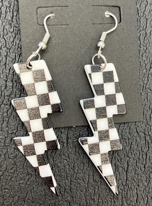 > Checkered Lightening Bolt Earrings