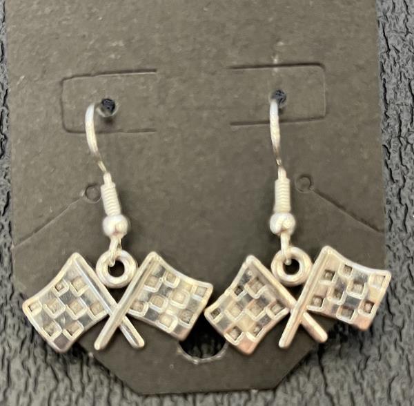 Siver Double flag Checkered Earrings, about 7/8 inch wire dangle.