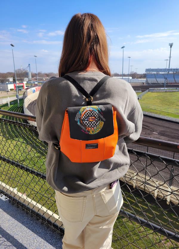 > Neon Orange & Jet Black Just A Girl Who Loves Racing Mini Backpack