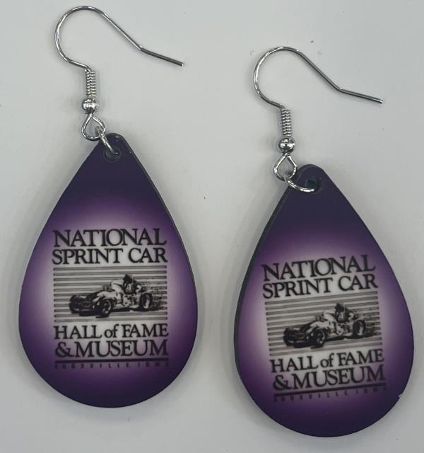 These Earrings are light weight made out of wood, With the NSCHOF&M logo on them. They are purple,black and white,they dangle with a wire hook.