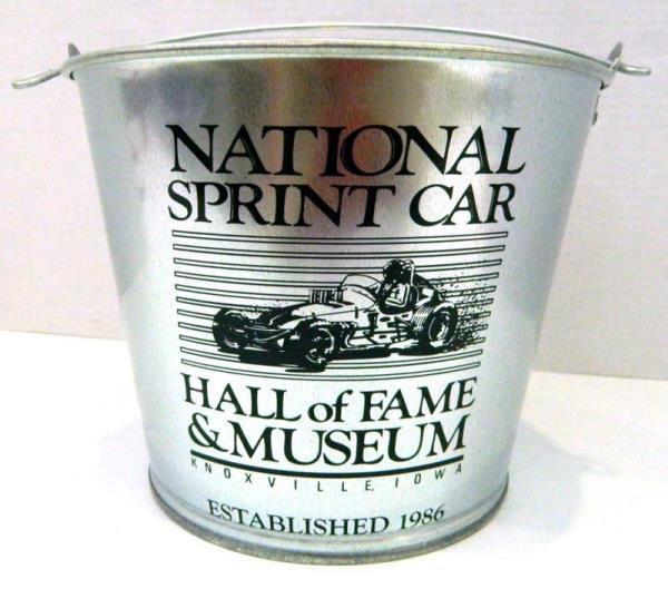 Serve your favorite snack, or put your favorite beverage on ice in one of these nice 5 quart galvinized bucket. Has a "NATIONAL SPRINT CAR HALL OF FAME & MUSEUM" decal on side of the pail.