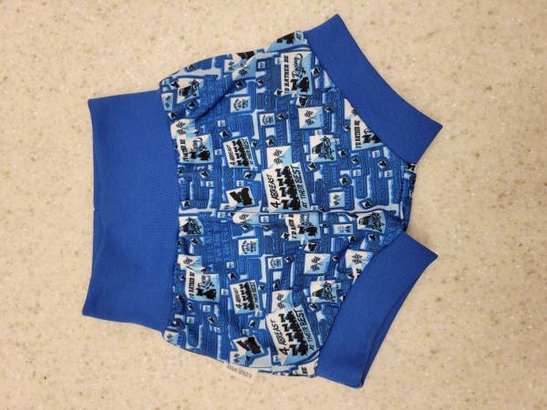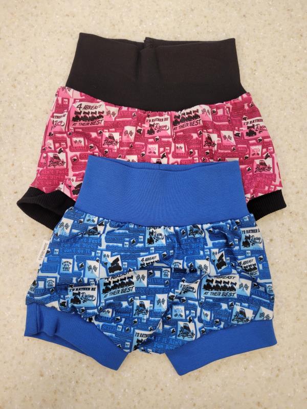 These handmade bummies are made of modern jersey knit material with rib knit for the cuffs and waist band. Made Locally. Limited quantites.