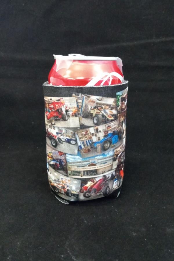 National Sprint Car Hall of Fame & Museum logo on one side and a picture collage of race cars that are or have been in our museum on the other side.
