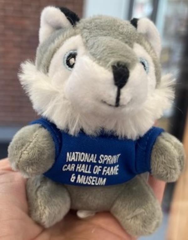 These are a plush key chain made out of polyester fibers, surface washable 3" seated, wearing a T-shirt (assorted colors) that says National Sprint Car Hall Of Fame & Museum.