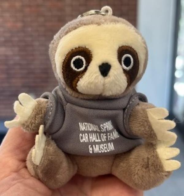 These are a plush key chain made out of polyester fibers, surface washable 3" seated, wearing a T-shirt (assorted colors) that says National Sprint Car Hall Of Fame & Museum.
