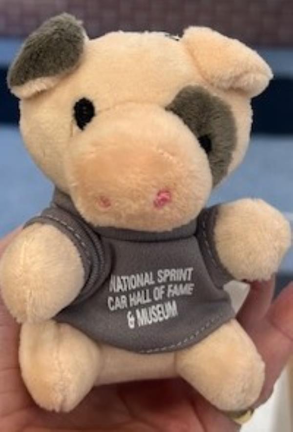 These are plush key chains made of polyester fibers, surface washable 3" seated, wearing a T-shirt(assorted colors) that says National Sprint Car Hall Of Fame & Museum.