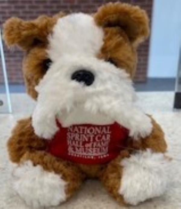 These Bull Dogs are made out of plyester and have soft fur, They measure 6' tall, they are wearing a T-shirt that say National Sprint Car Hall of Fame & Museuem Knoxville, Iowa. Assorted colors ( Gray, Red, Purple, Blue, Green Orange.)