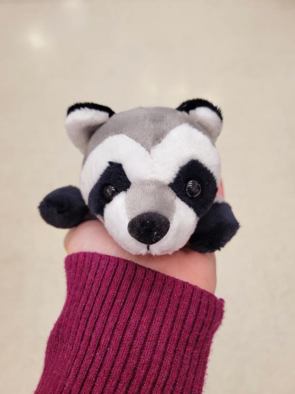 These raccoons are made of polyester and have soft microfiber bellies. They are five and a half inches in length lying down. They are wearing assorted color t-shirts that say “National Sprint Car Hall of Fame & Museum (located in) Knoxville, Iowa” on the front. Would make a great souvenir for the little critter in your life!