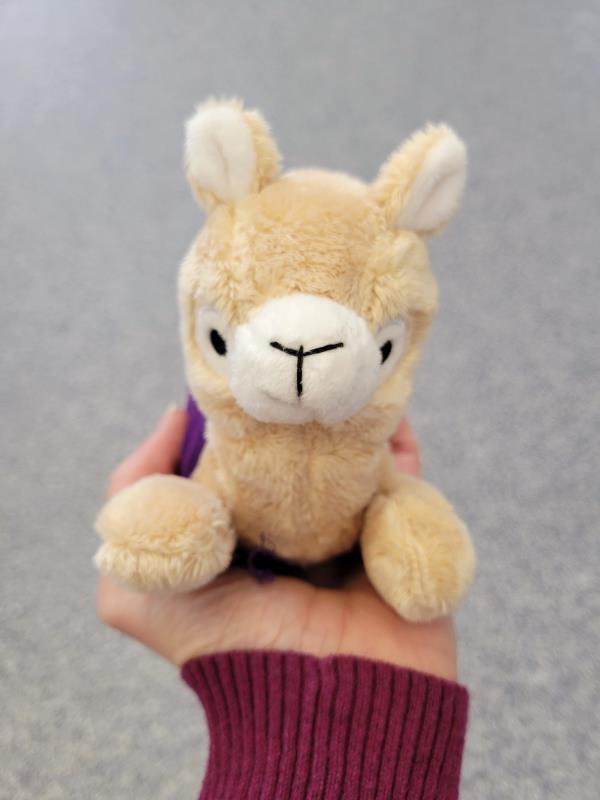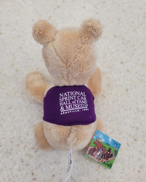 These llamas are made of polyester and have soft microfiber bellies. They are five and a half inches in length lying down. They are wearing assorted color t-shirts that say “National Sprint Car Hall of Fame & Museum (located in) Knoxville, Iowa” on the front. Would make a great souvenir for the little critter in your life!