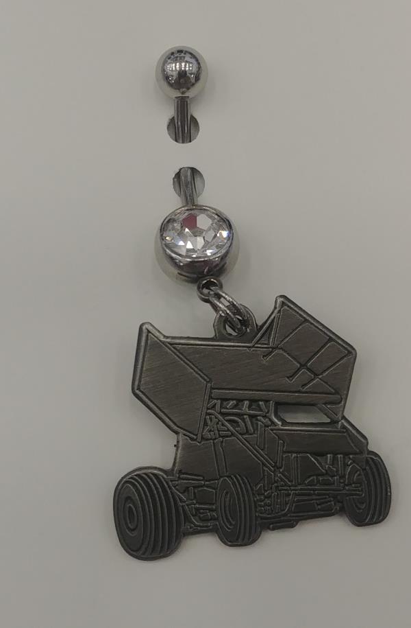 This detailed charm measures 1" wide and is hung on a surgical stainless steel 14 gauge barbell belly button ring. The charm is made of silver-tone base metal that is lead free.