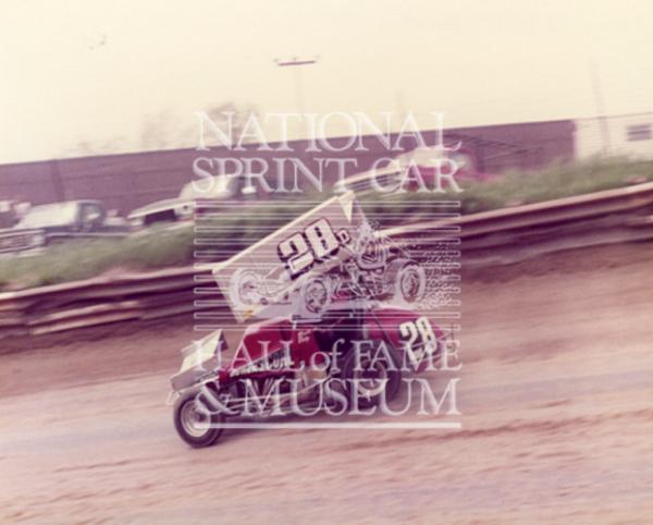 Brad Doty, #28D, Eldora Speedway, Rossburg, Ohio, 05-21-83, Herb Zieman Photo/NSCHoF&M Collection. Postage and handling included in the price for US deliveries. International orders please e-mail giftshop@sprintcarhof.com.