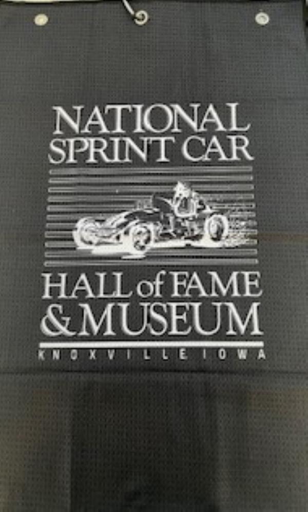 Features The National Sprint Car Hall of Fame & Museum Logo Knoxville, Iowa on the front side .