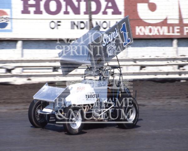 Jaymie Moyle, #1, Knoxville Raceway, Knoxville, Iowa, 08-87, Al Booton Photo/NSCHoF&M Collection. Postage and handling included in the price for US deliveries. International orders please e-mail giftshop@sprintcarhof.com.