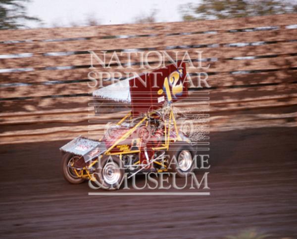 Mike Twedt, #12T, Knoxville Raceway, Knoxville, Iowa, 09-89, Al Booton Photo/NSCHoF&M Collection. Postage and handling included in the price for US deliveries. International orders please e-mail giftshop@sprintcarhof.com.